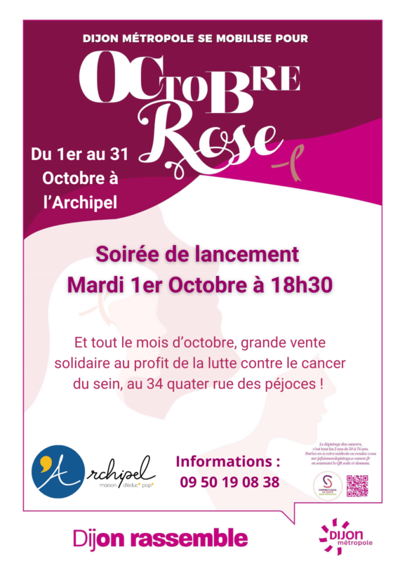 L’Archipel vous invite, mardi 1er Octobre à 18h30 au 34 quater rue des péjoces, à sa soirée de lancement pour Octobre Rose. Une grande vente solidaire au profit de…