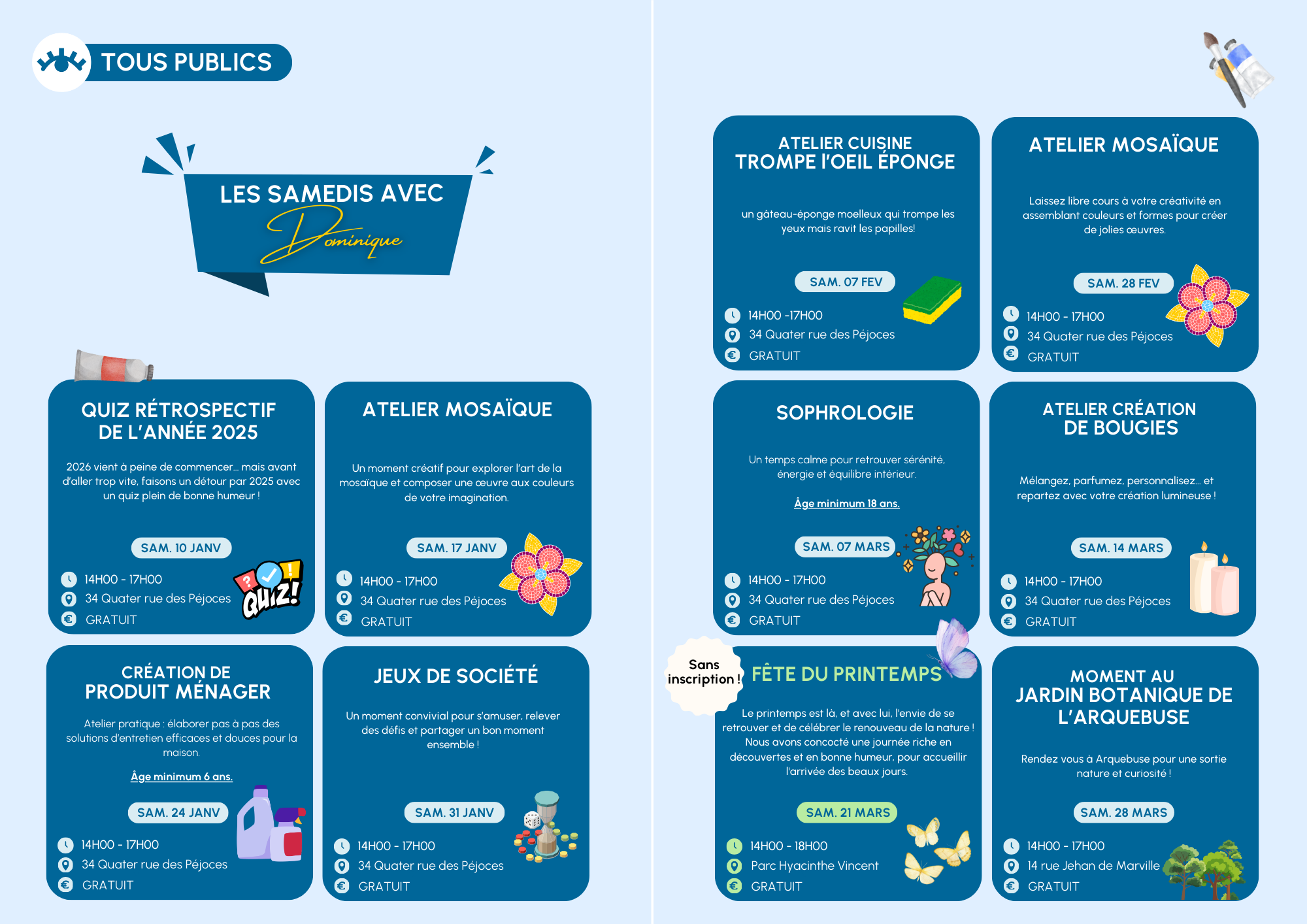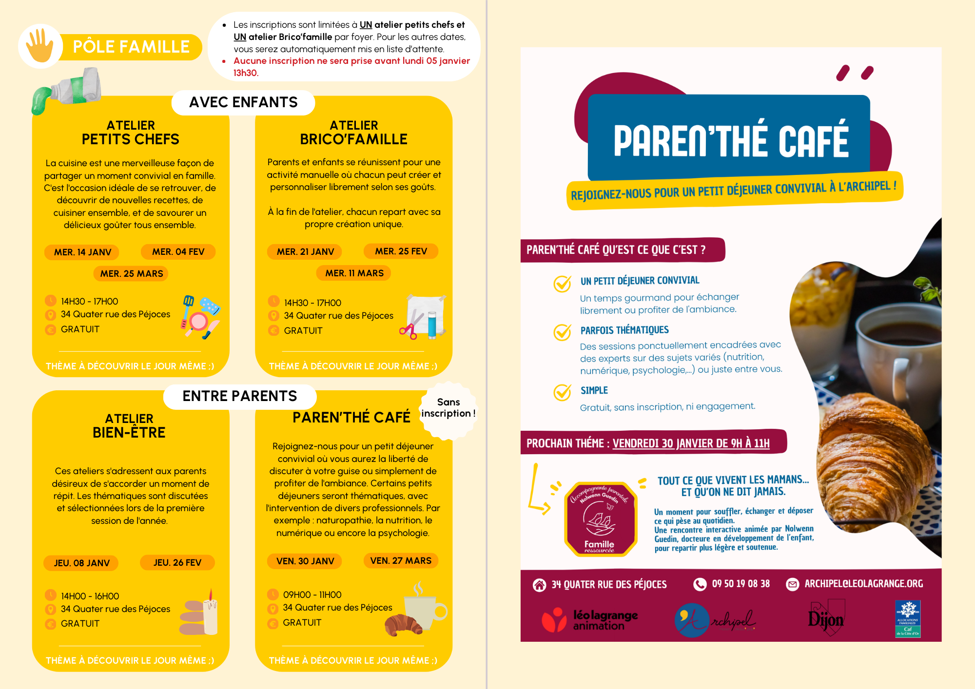 Programme trimestriel de janvier à mars 2026 Publication publiée :9 décembre 2025 Post category:Actualités PDF en ligne Pour passer de bonnes fêtes en toutes sérénités, l’Archipel vous propose de vous plonger dès maintenant dans son programme trimestriel de janvier à mars 2026 /!\ Pas d’inscription avant le lundi 05 janvier 13h30 Read more articles Article précédentVous avez un ado, on en parlait ?